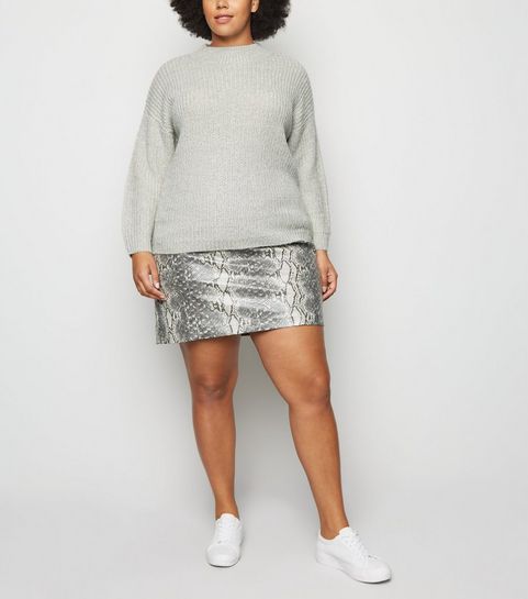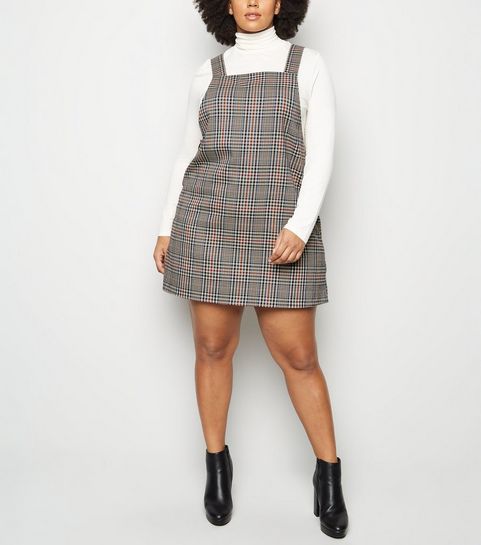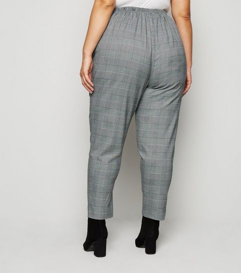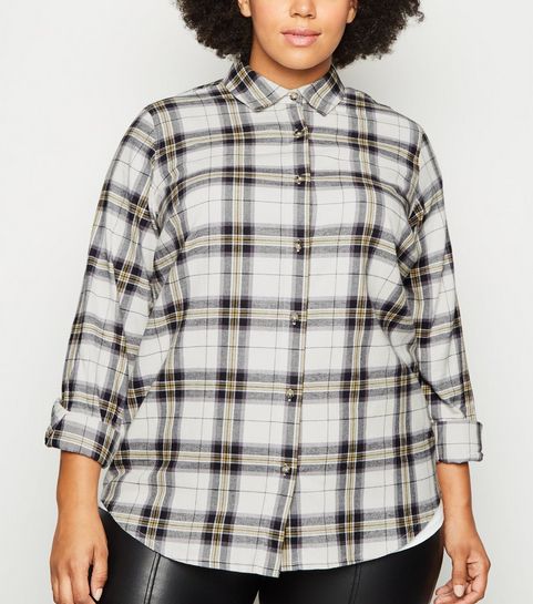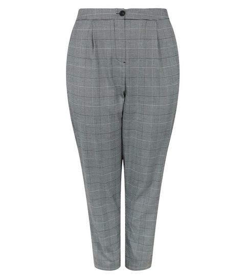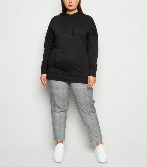 Curves Black Check Brushed Zip Skirt