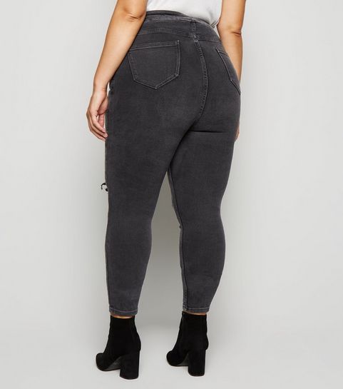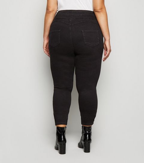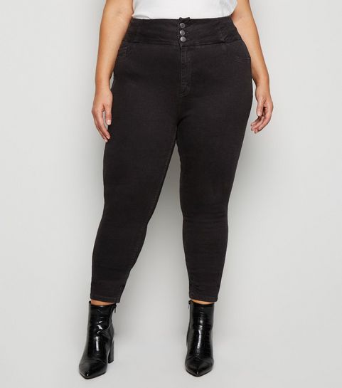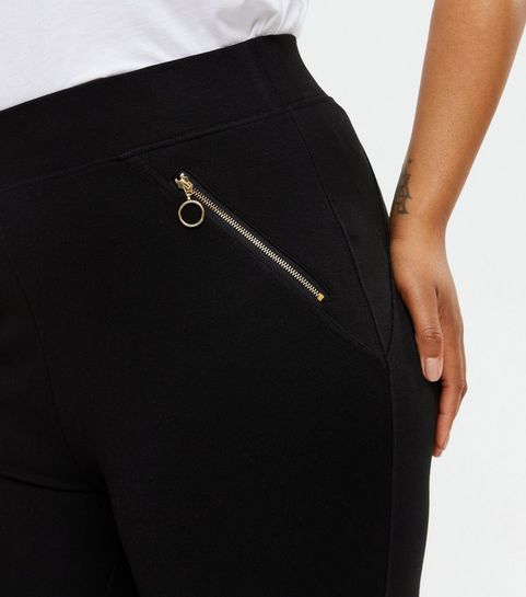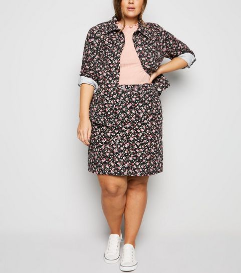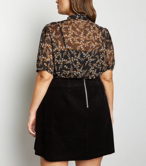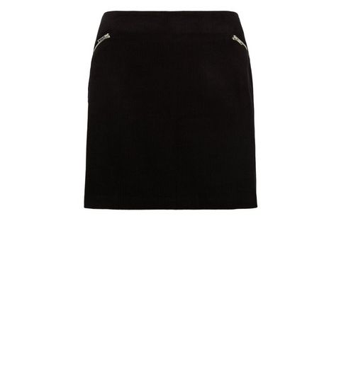 Curves Black Corduroy Zip Skirt