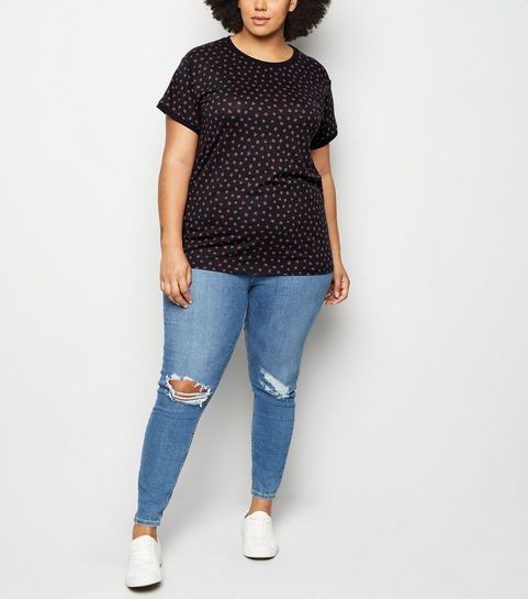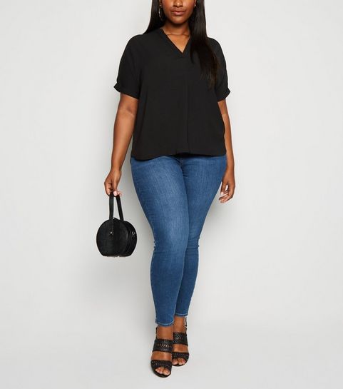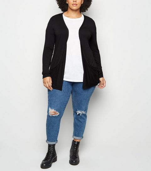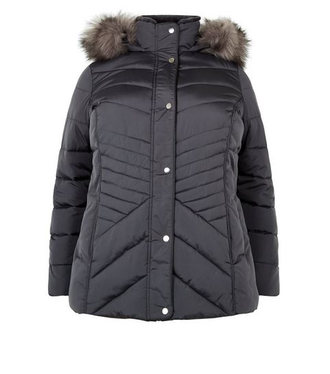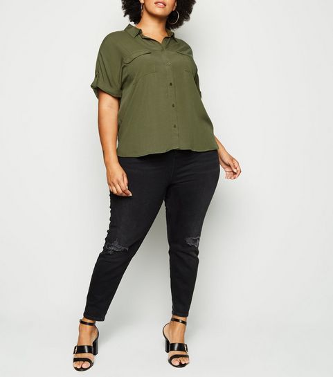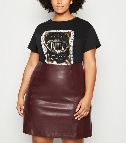 Curves Black Corduroy Zip Skirt