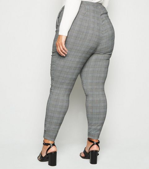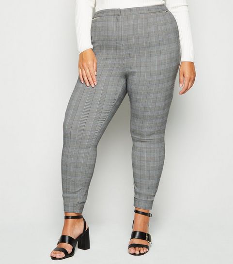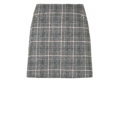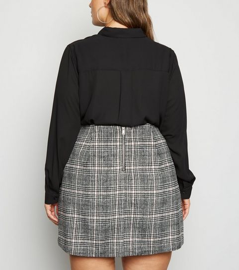 Curves Black Check Brushed Zip Skirt